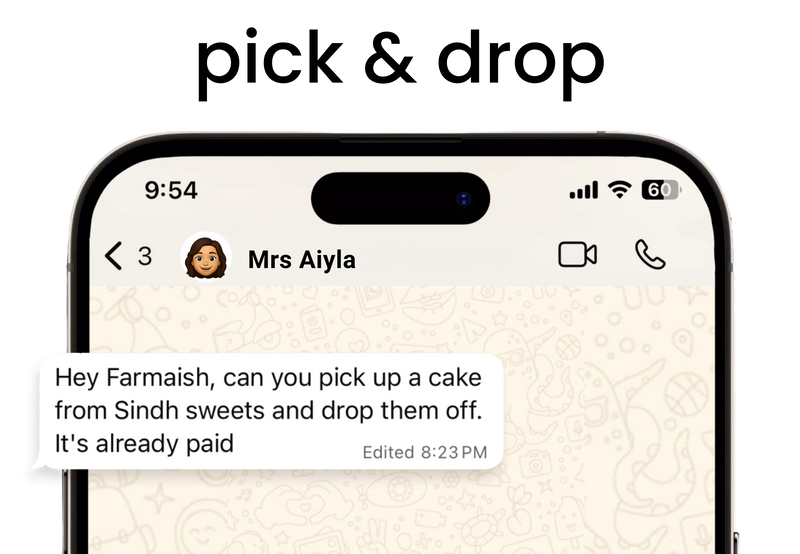 People use Farmaish for everyday errands and one-off requests alike. If it exists in Karachi and needs a human to make it happen, that’s where we come in.